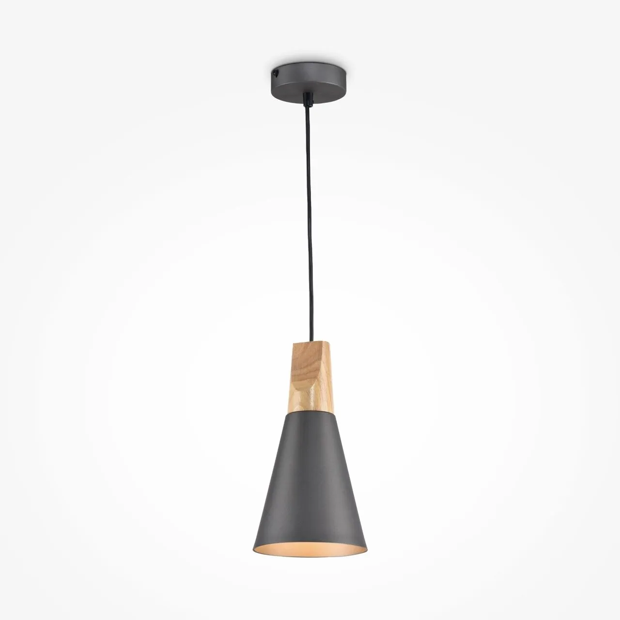 Сочетание материалов и цветовое решение светильников серии Bicones характерно для скандинавского дизайна. В конструкции используется декоративный элемент из бука, который является своеобразным акцентом. Для сохранения и выявления натуральной фактуры дерева использован бесцветный лак. Плафон и потолочная чаша изготовлены из металла и выкрашены в белый или серый цвет. Высота подвесных светильников регулируется длиной шнура.