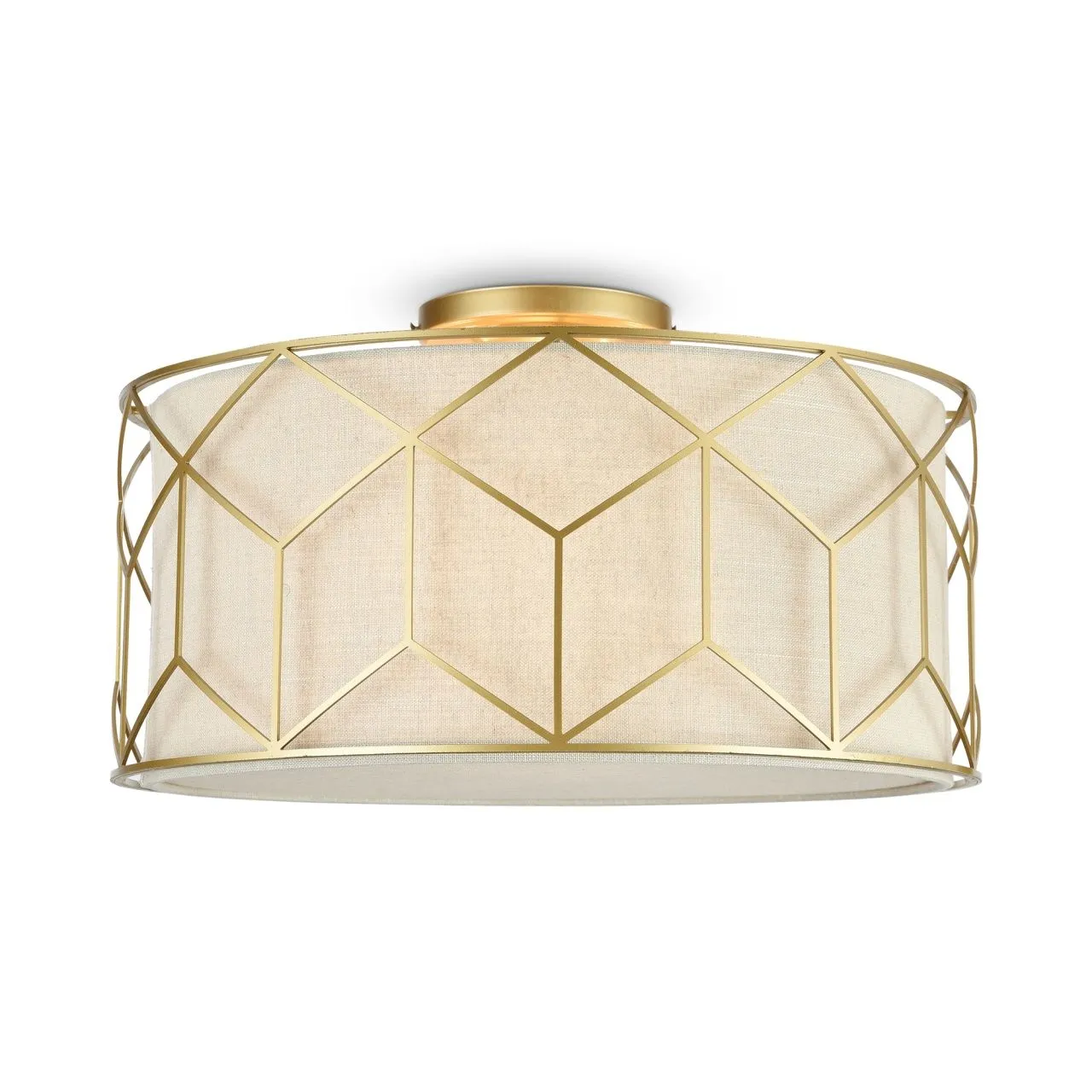 Изысканный металлический орнамент опоясывает модели серии Messina. Абажуры изготовлены из натурального льна, нанесенного на ПВХ. Каркас и внутреннее устройство светильников скрыты за матовым рассеивателем. Сочетание благородного золотого орнамента и льна дарит теплый свет и уют.