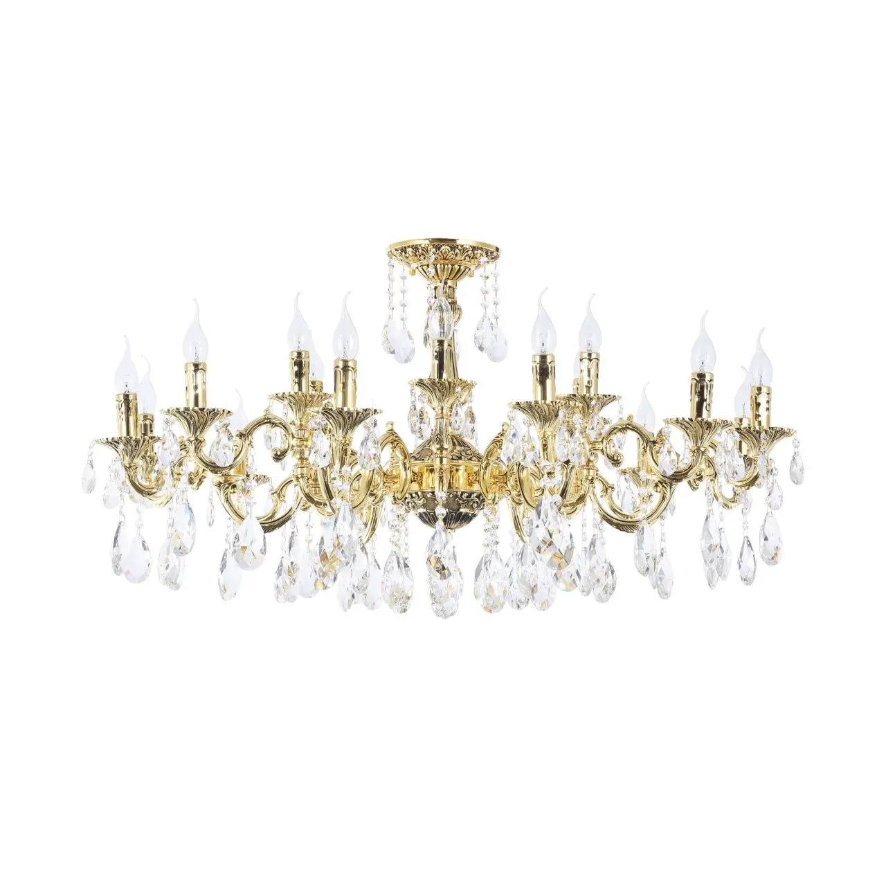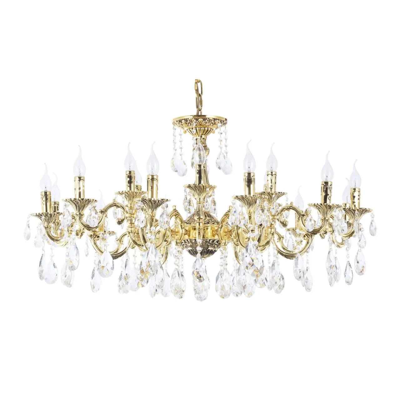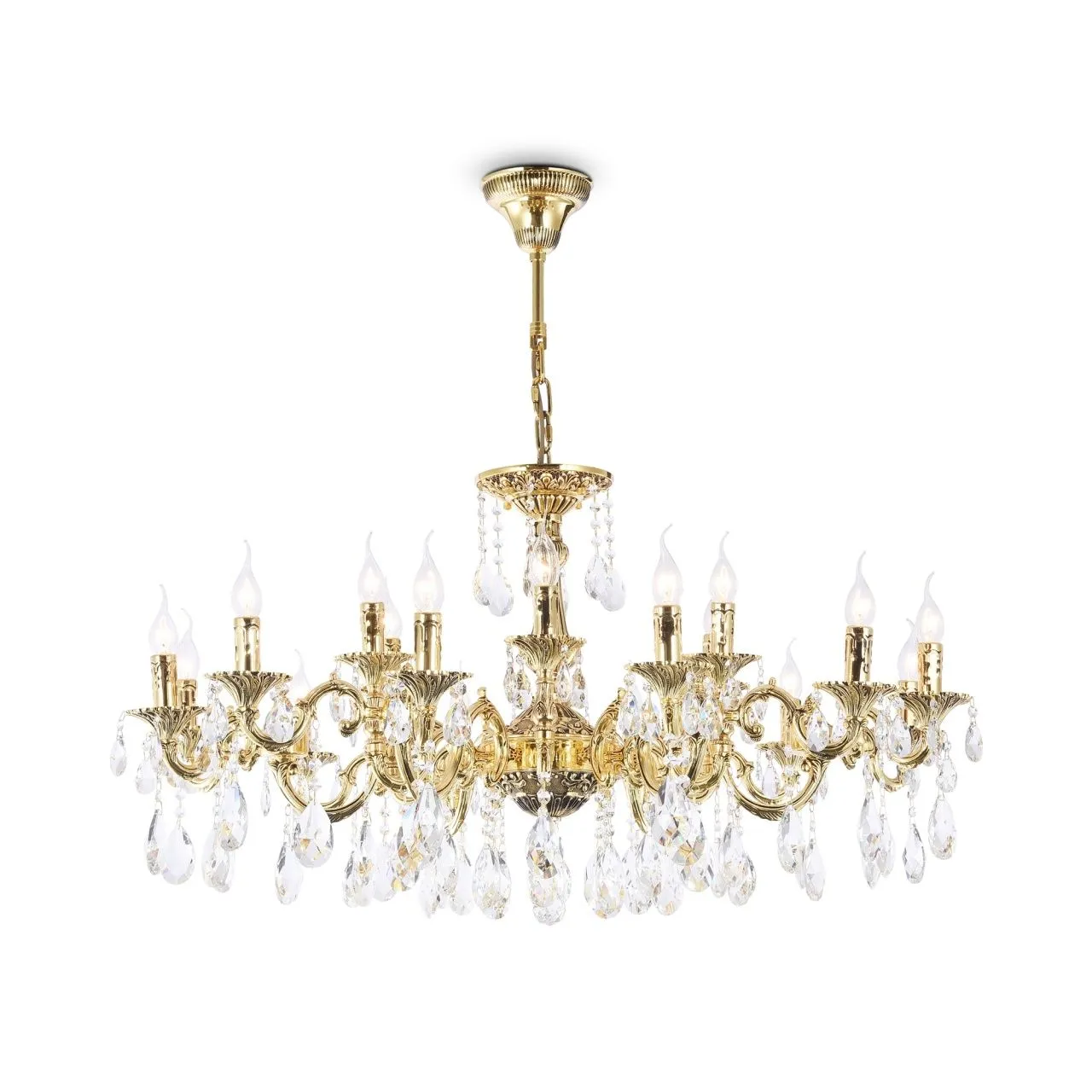Благодаря использованию технологии литья арматура светильников украшена разнообразным рельефным декором. Гальваническое покрытие золотого цвета и черная патина покрывает все металлические части каркаса. Конструкцию украшают подвески из кристаллов различных огранок. Универсальное крепление 2 в 1" позволяет монтировать люстры с использованием цепи или без нее. Предоставляется дополнительный год гарантии."