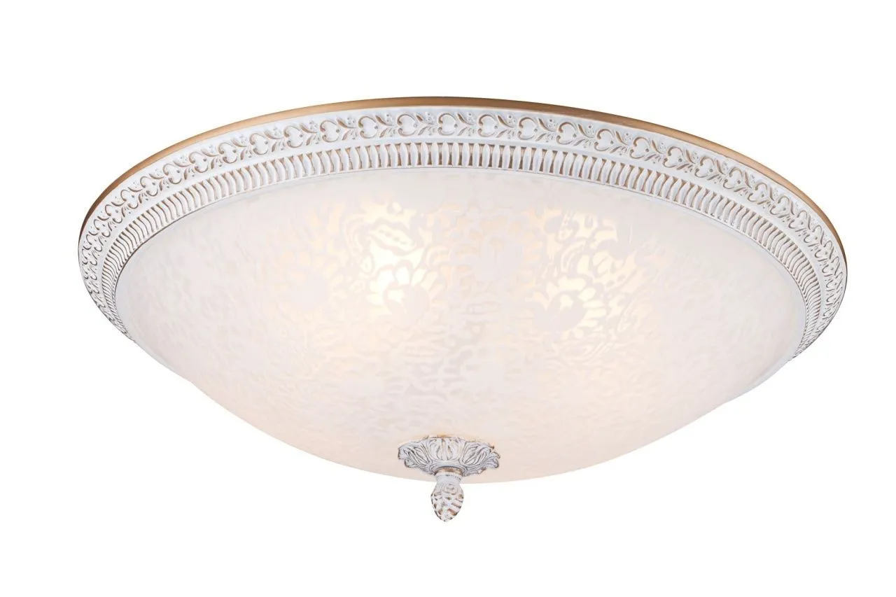 Плафон из матового стекла с пескоструйным цветочным узором скрывает внутренние элементы каркаса и мягко рассеивает свет ламп. Декоративный обруч и наконечник выполнены из акрила. Фактура прессованного орнамента на стальных деталях подчеркнута искусственной патиной. Несколько вариантов цветов и размеров светильников позволят подобрать оптимальный вариант для освещения интерьера.