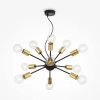 Подвесные светильники серии Jackson в стиле лофт завораживают своим ярким дизайном. Черная арматура дополнена латунными декоративными колпачками, которые закрывают цоколи ламп. Серия представлена моделями разного размера с двеннадцатью и восемнадцатью рожками. Высоту подвесных светильников можно отрегулировать длиной троса.