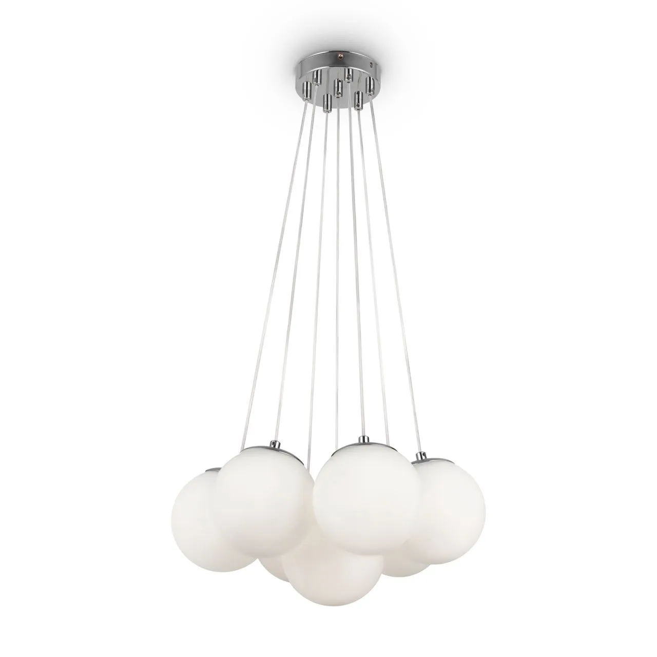 Серия Fiesta добавит интерьеру легкости и станет неповторимым акцентом. Лаконичная металлическая арматура представлена в оттенках хрома и латуни. Нежные плафоны-сферы выполнены из белого матового стекла. В серии представлены два вида подвесных светильников: с регулируемой высотой на 7, 13, 19 ламп, а также фиксированной на 6 ламп. Светильники с фиксированным основанием украшены «облаком» декоративных плафонов на изящных цепочках. Прикрывая источник света, они мягко рассеивают его лучи. У светильников с регулируемой высотой лампы помещены внутри плафонов, подвешенных на прозрачных, словно невесомых проводах. Визуально незаметные подвесы обеспечивают трендовый эффект парения: плафоны-сферы словно замирают в воздухе. Невесомый дизайн актуален для жилых пространств, оформленных в стиле сканди, фьюжн, контемпорари, mid-century modern. Группу из нескольких светильников удобно использовать в одном помещении, создавая световые композиции в единой стилистике.