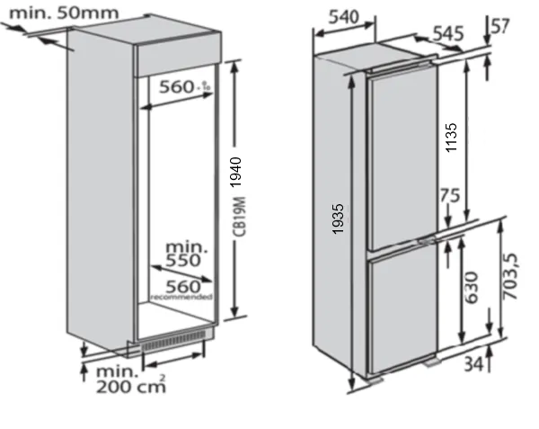 - Размер ниши для встраивания (ШхВхГ), мм: 560х1950х560