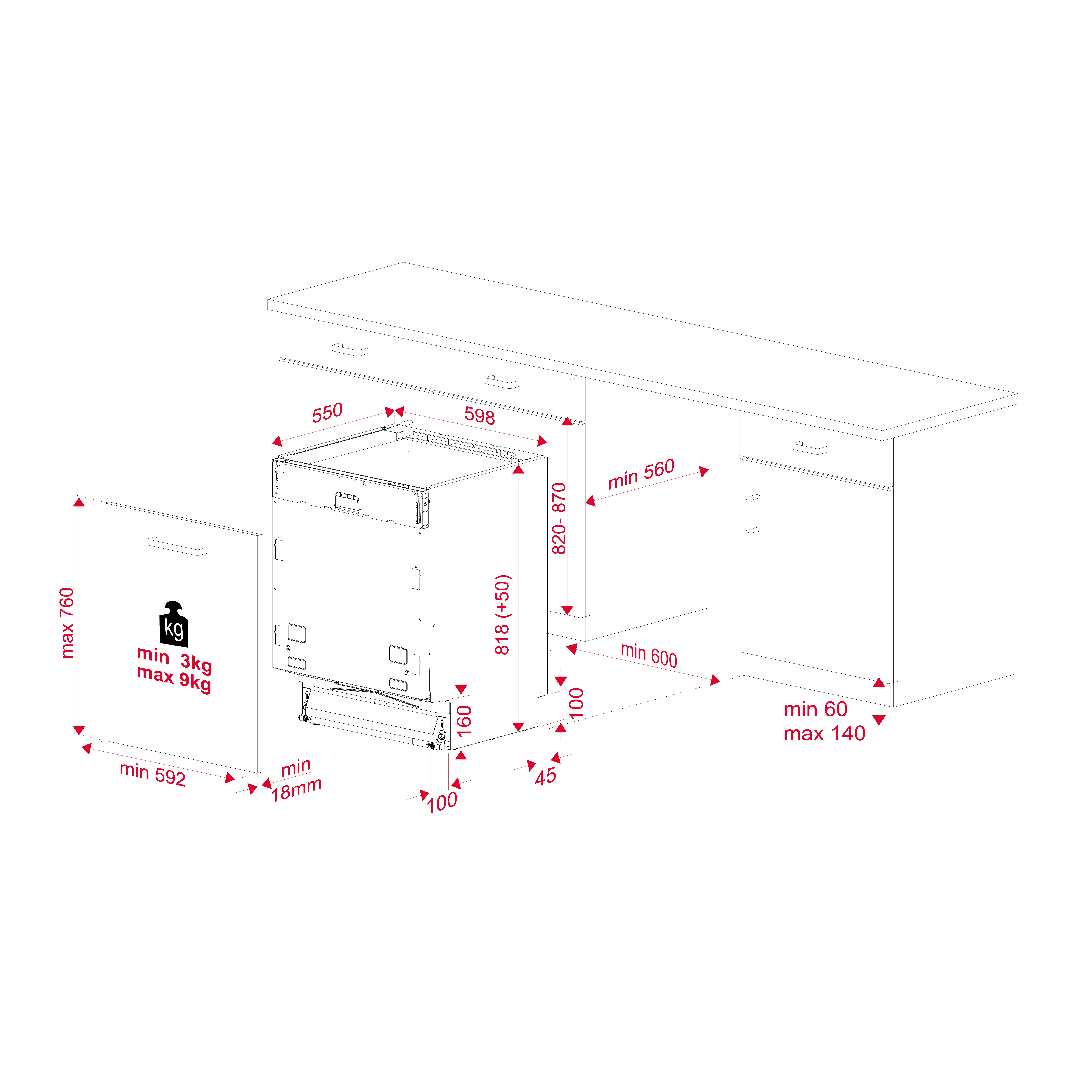 допустимая масса фасада для навешивания на дверь 3-9 кг.