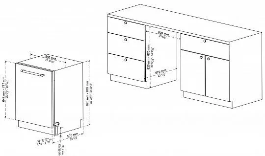 - Размеры встраивания (ВxШхГ) (мм): 820-870x600х570