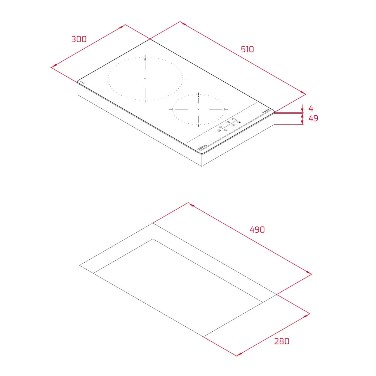 2 зоны готовки: 1 индукционная зона Ø 210 мм (2,1/3,0 кВт)