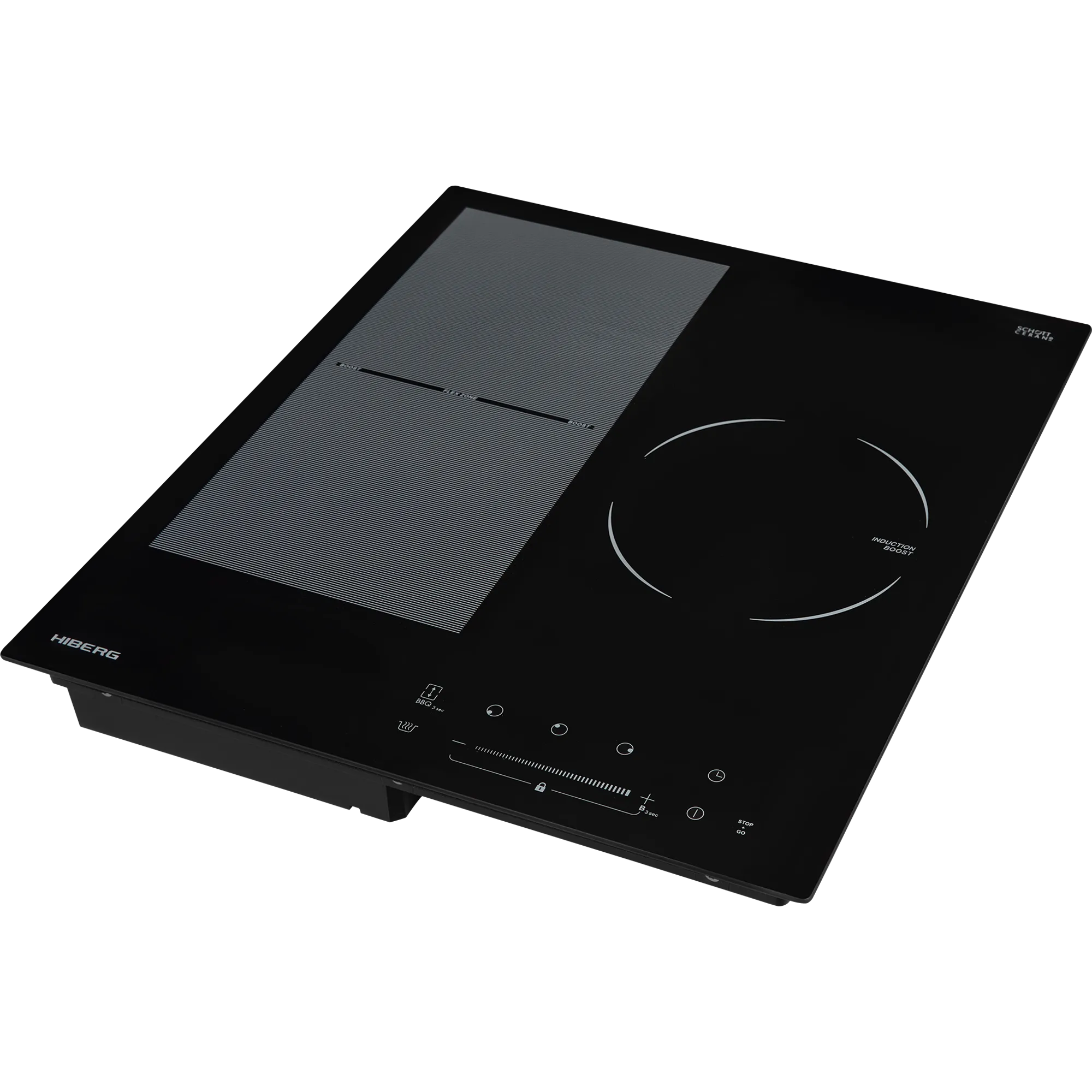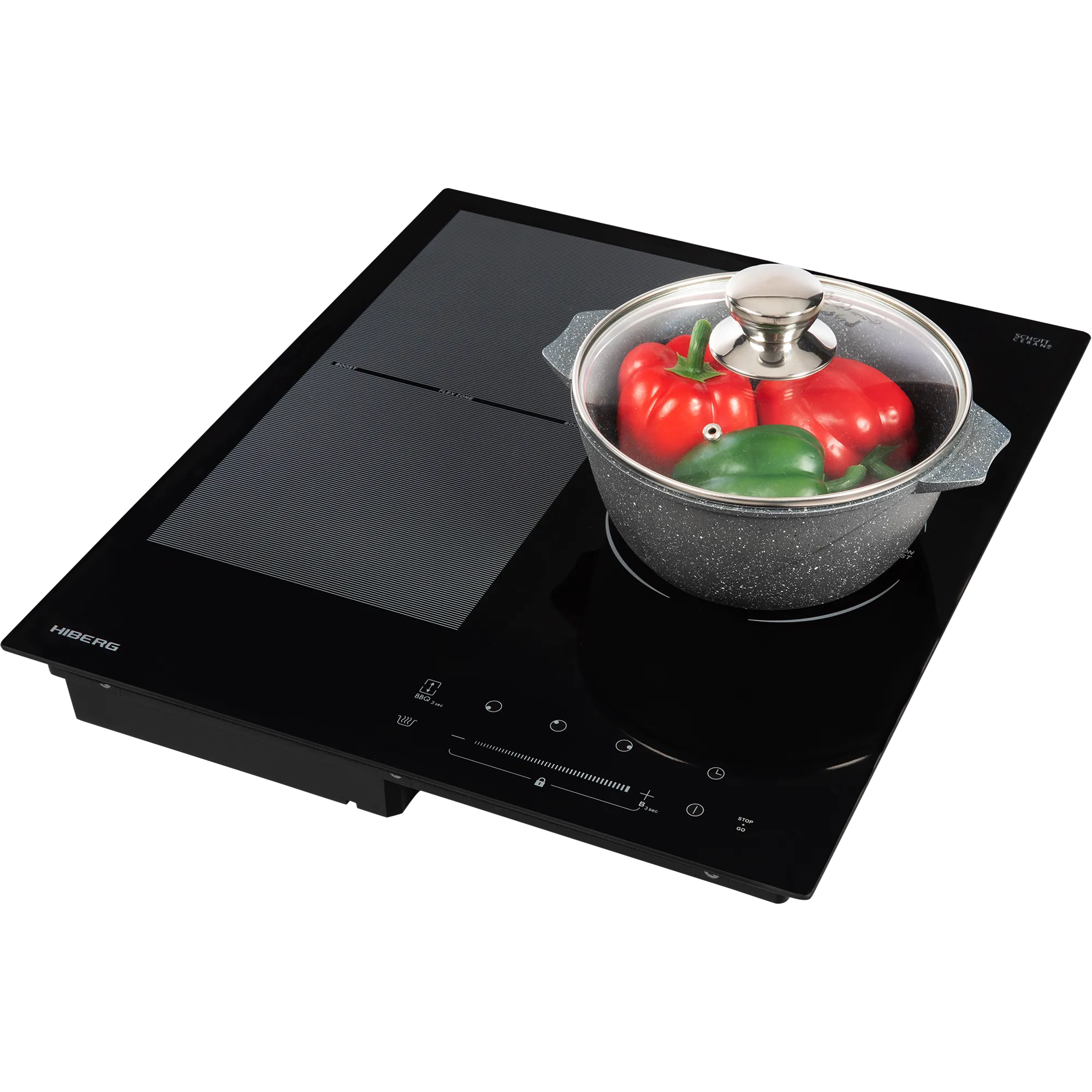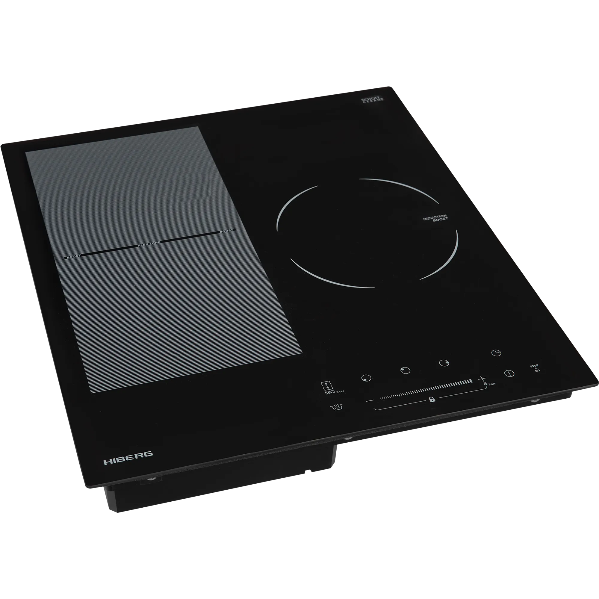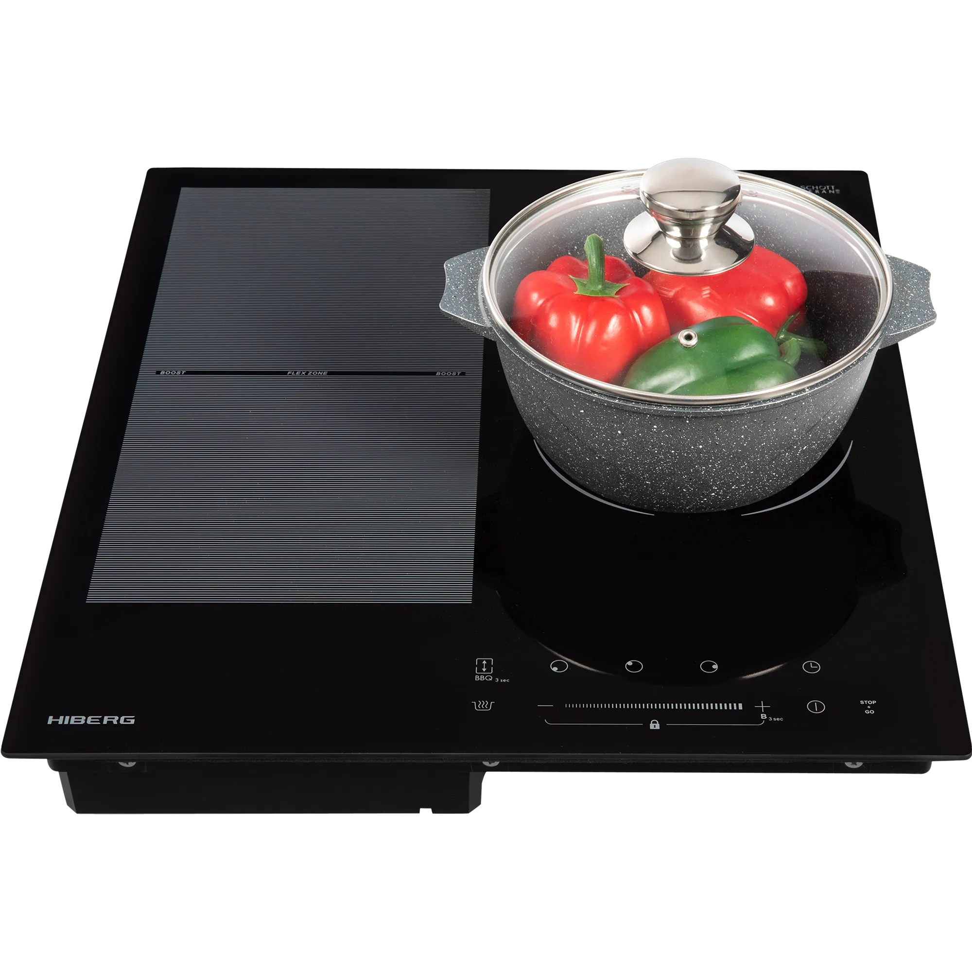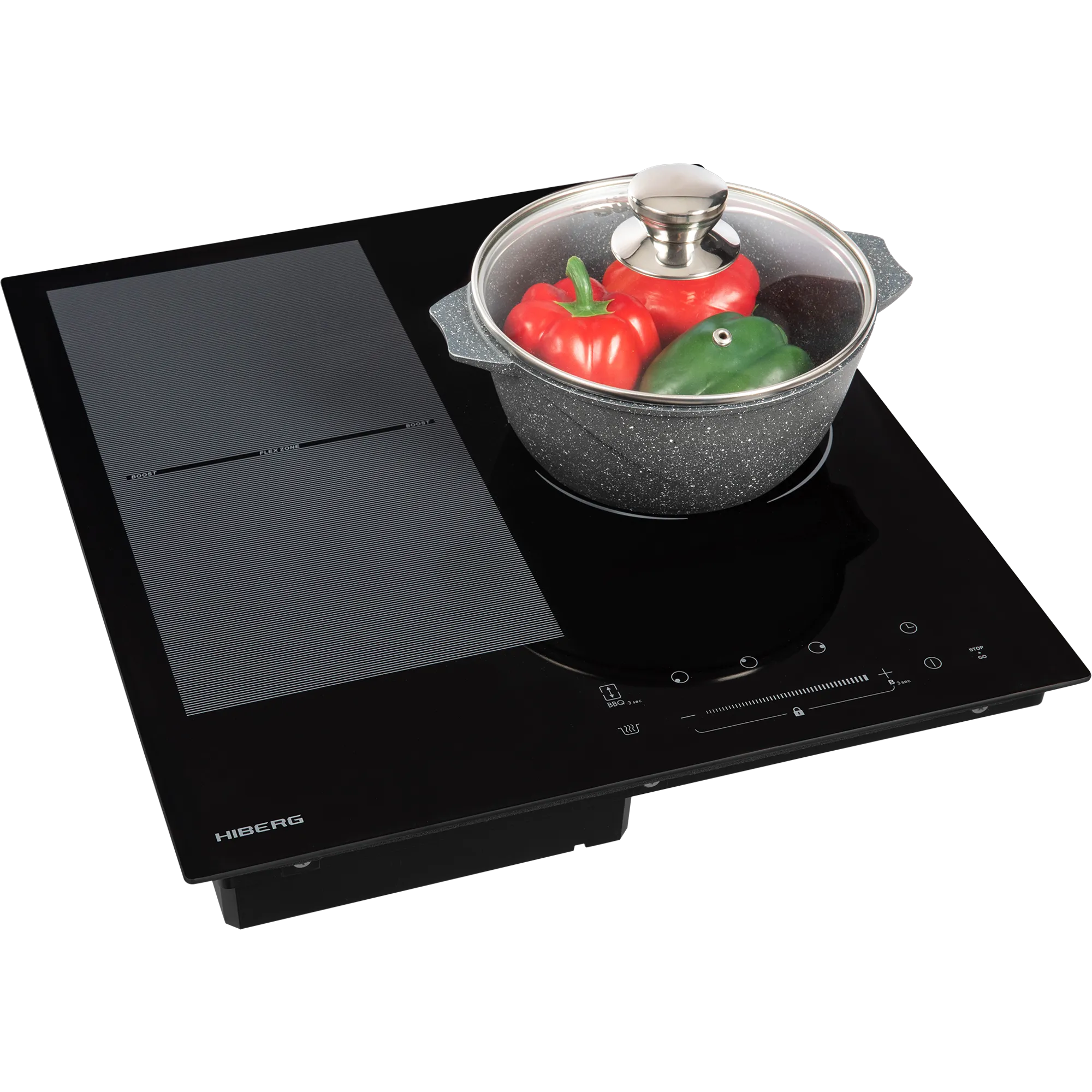 Встраиваемая индукционная варочная поверхность HIBERG i-MS 4539 B выполнена из немецкой стеклокерамики Schott ceran и оснащена 3 конфорками с сенсорным слайдерным управлением.