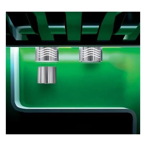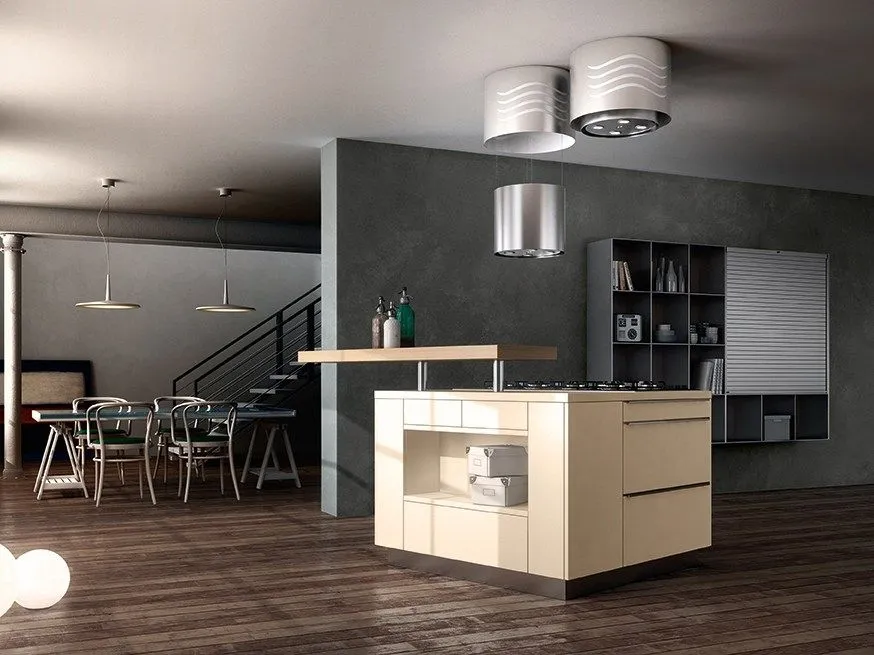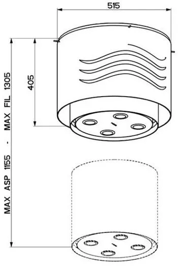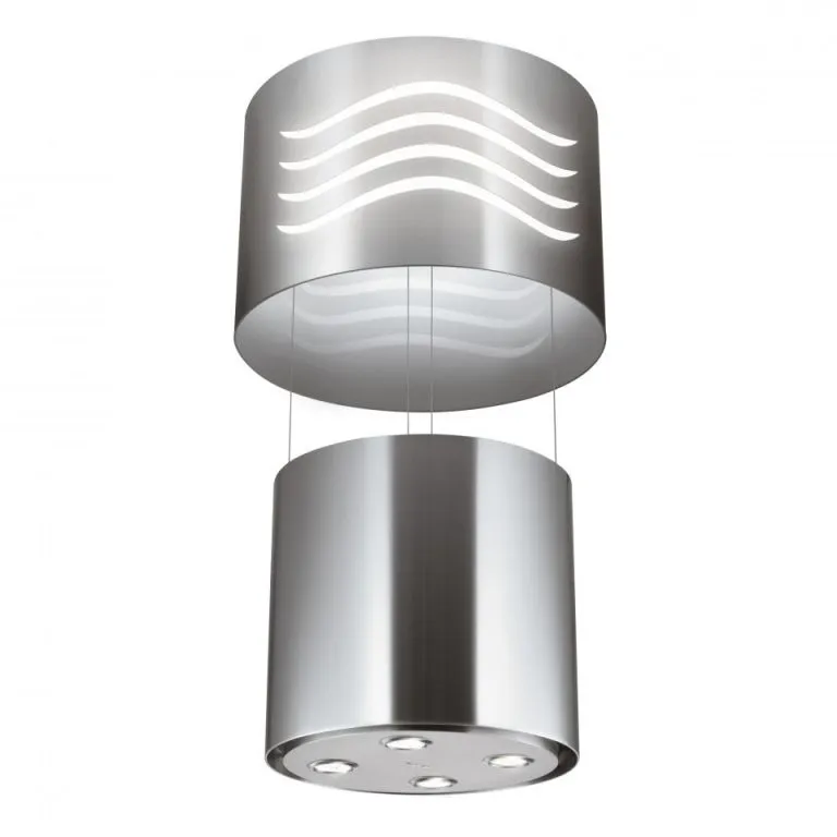VERTIGO - стильная вытяжка, полностью выполнена из нержавеющей стали, а прорези в виде волн на светильнике пропускают свет и создают необычное освещение на кухне. Может использоваться отдельно как осветительный прибор (светильник).